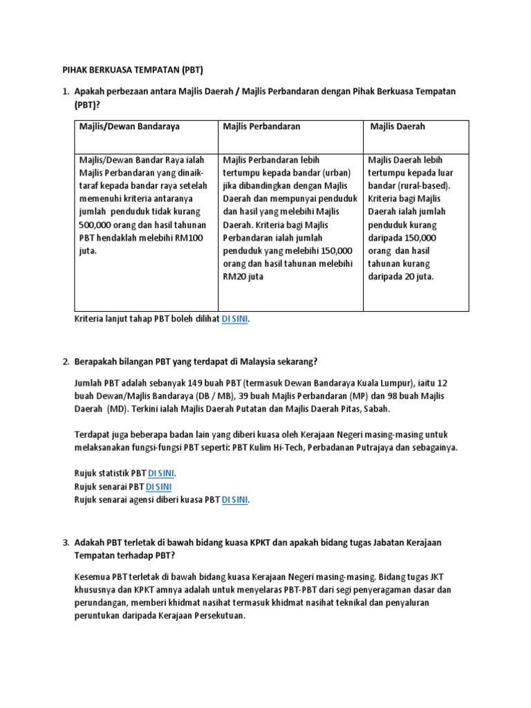 Pihak Berkuasa Tempatan Pbt Sebagai Pihak Berkuasa Perancang Tempatan Pbpt Di Dalam Pembangunan Negera Docx Document