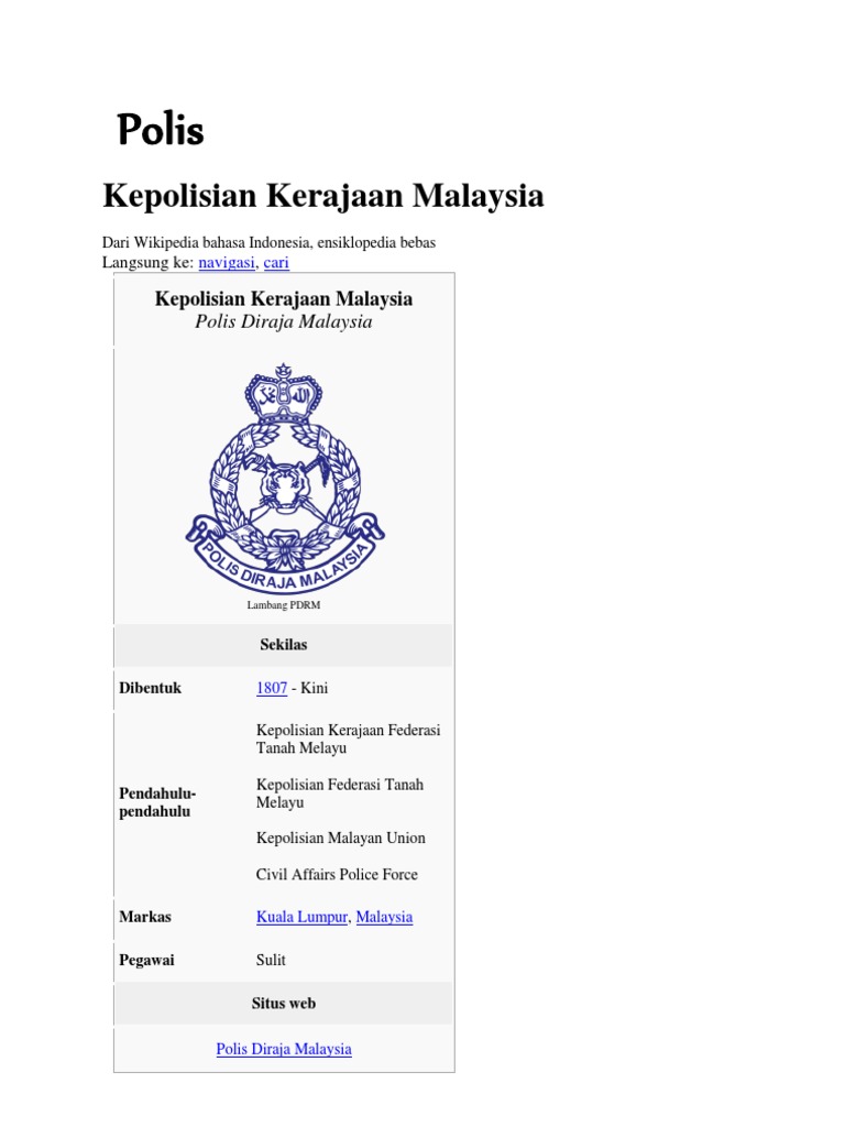 Polis Diraja Malaysia Wikipedia Bahasa Melayu Ensiklopedia Bebas Pdf Document