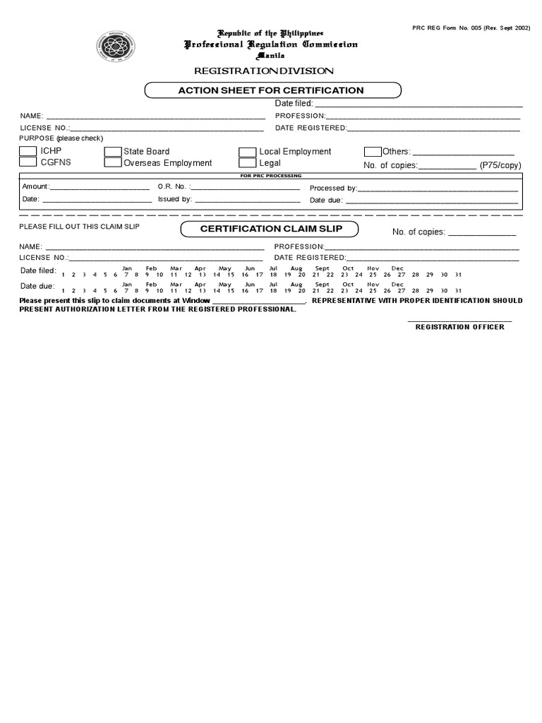 Prc Form Action Sheet Form For Certification Identity Document Government Information