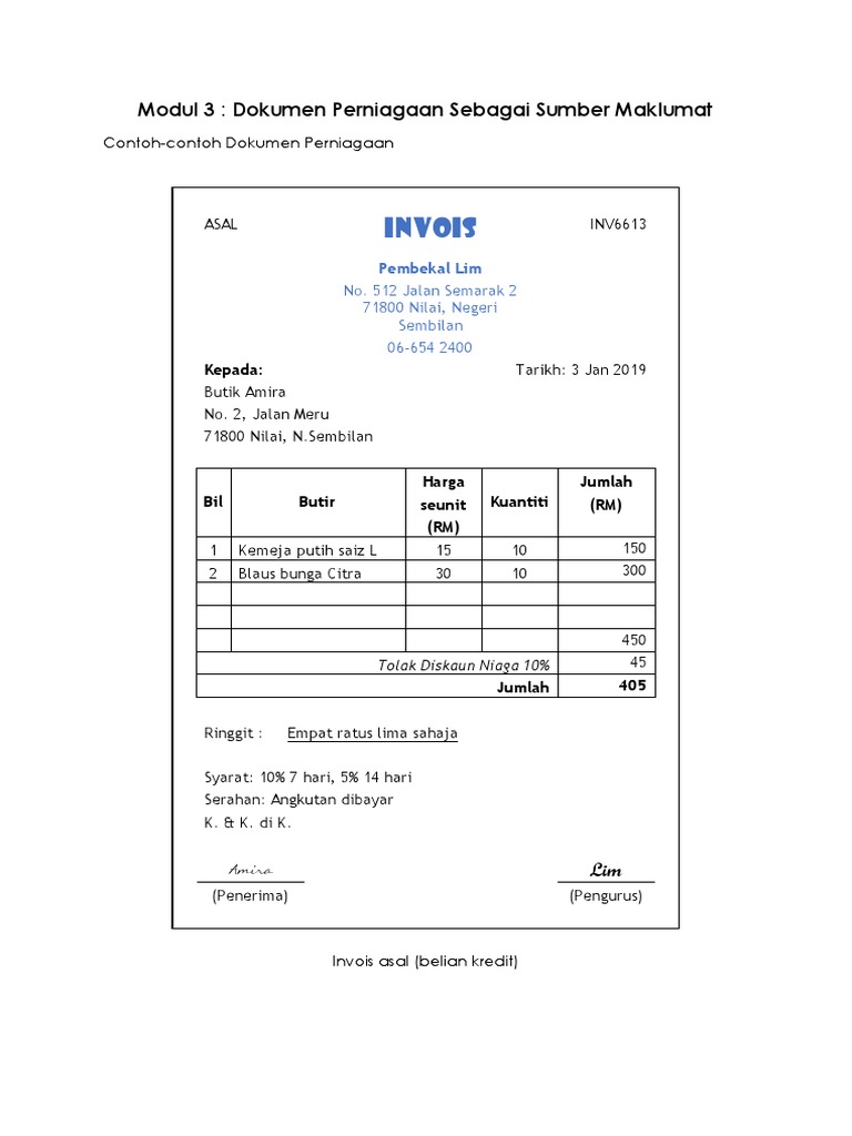 Prinsip Perakaunan Tingkatan 4 Contoh Dokumen Sumber