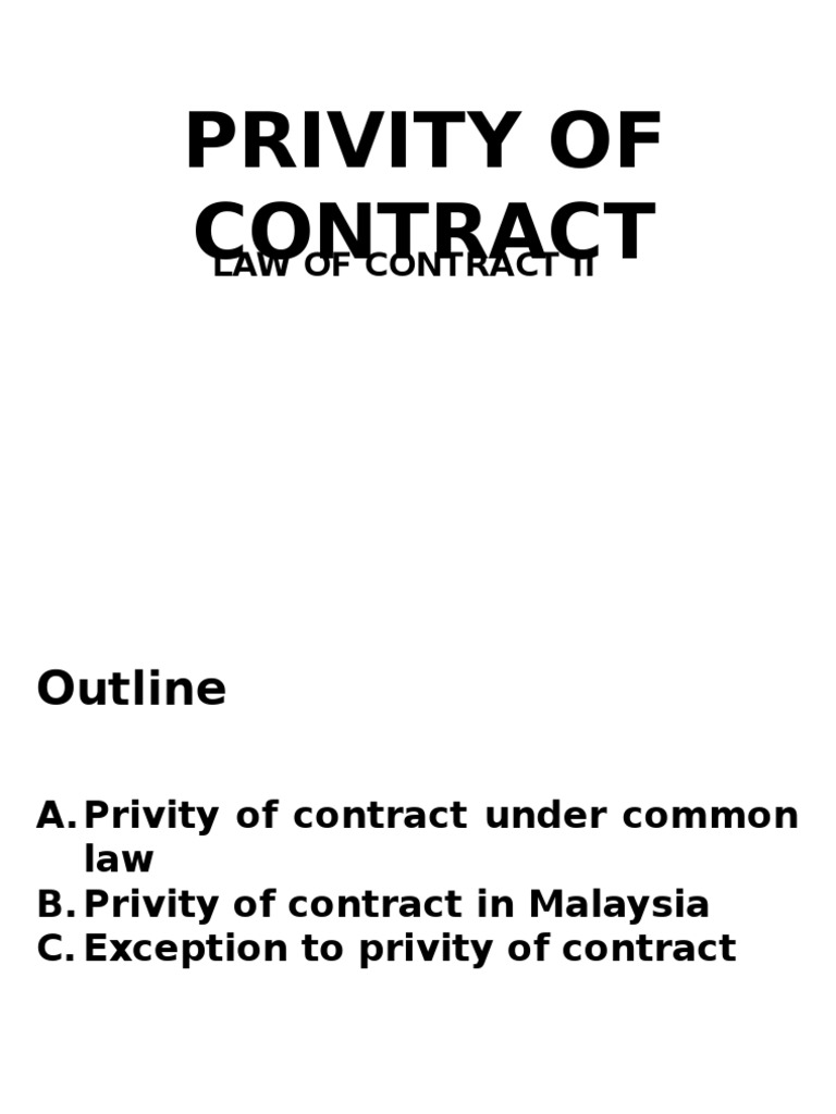 Contract Notes Privity Of Contract Law Law224 Uitm Studocu