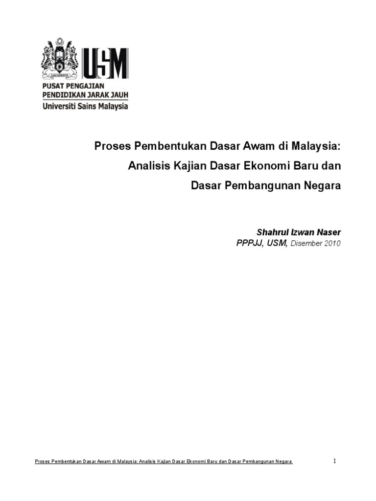 52738255 Proses Pembentukan Dasar Awam Di Malaysia Analisis Kajian Dasar Ekonomi Baru Dan Dasar Pembangunan Negara Pdf Document