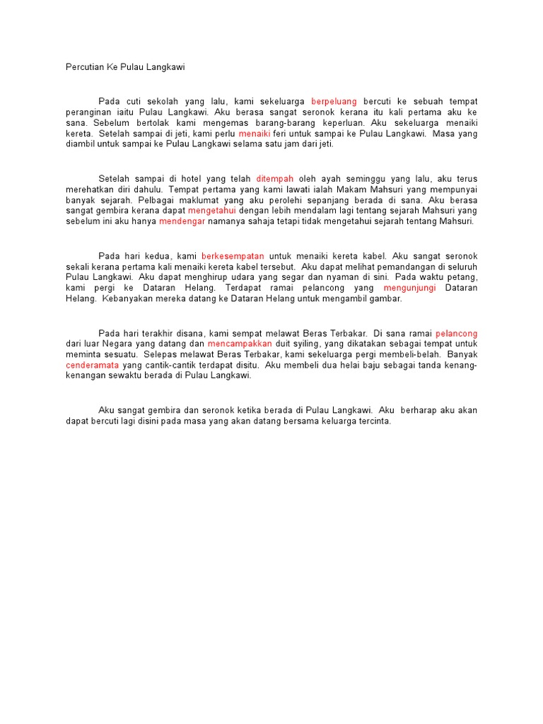 Karangan Bercuti Ke Pulau Langkawi Kbsr Bm Tahun 3